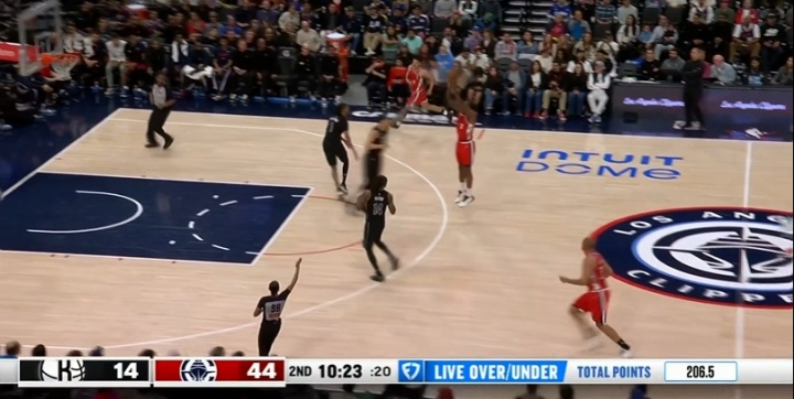 比赛第二节还有10分多钟,快船领先篮网33分了!