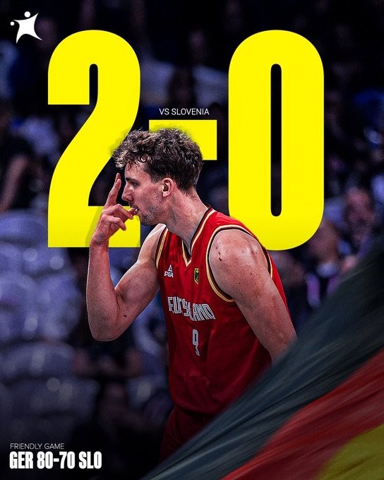 热身赛德国80-70再胜斯洛文尼亚 施罗德18+6&小瓦17分 东契奇缺阵